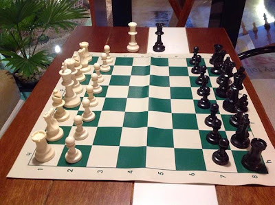 Bàn cờ có 2 màu trắng và xanh nên rất sáng và đang được các em nhỏ học cờ tại các trung tâm yêu thích.