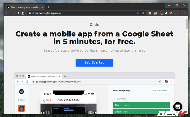 2. Glide – Xây dựng một trang ứng dụng di động từ Google Sheet mà không cần biết code