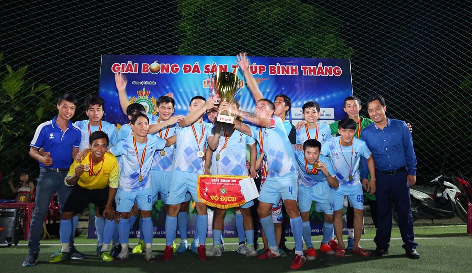 Đánh bại các cầu thủ Quang Cường FC trên loạt đấu súng cân não, FC 3AH4 chính thức đăng quang Giải bóng đá 7 người tranh Cúp Bình Thắng lần 1 năm 2019.