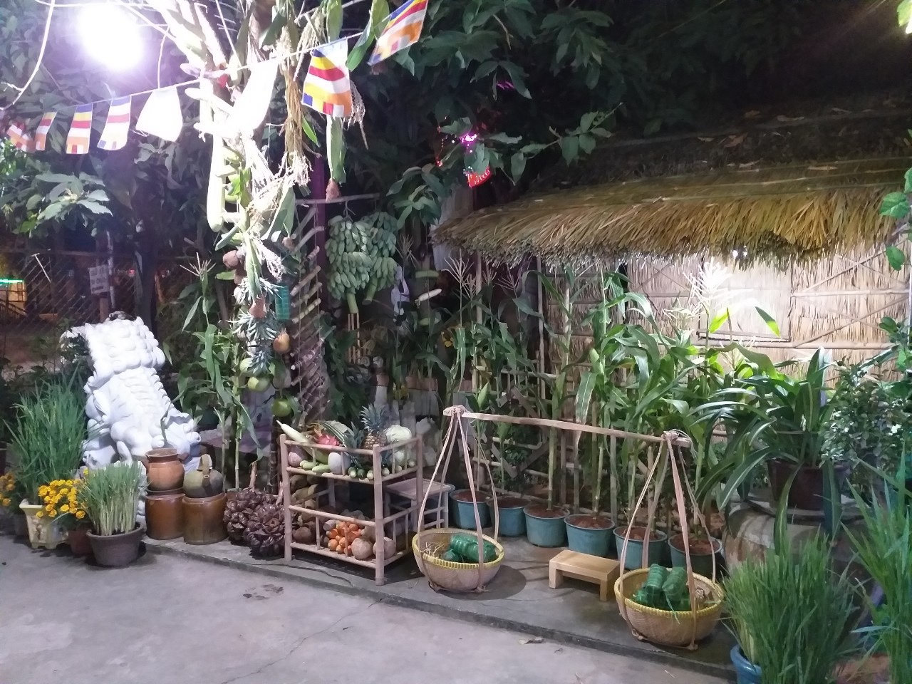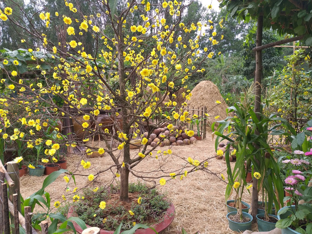 Một góc khuôn viên được phối trí giống như ngày Tết của một vùng quê ở nông thôn
