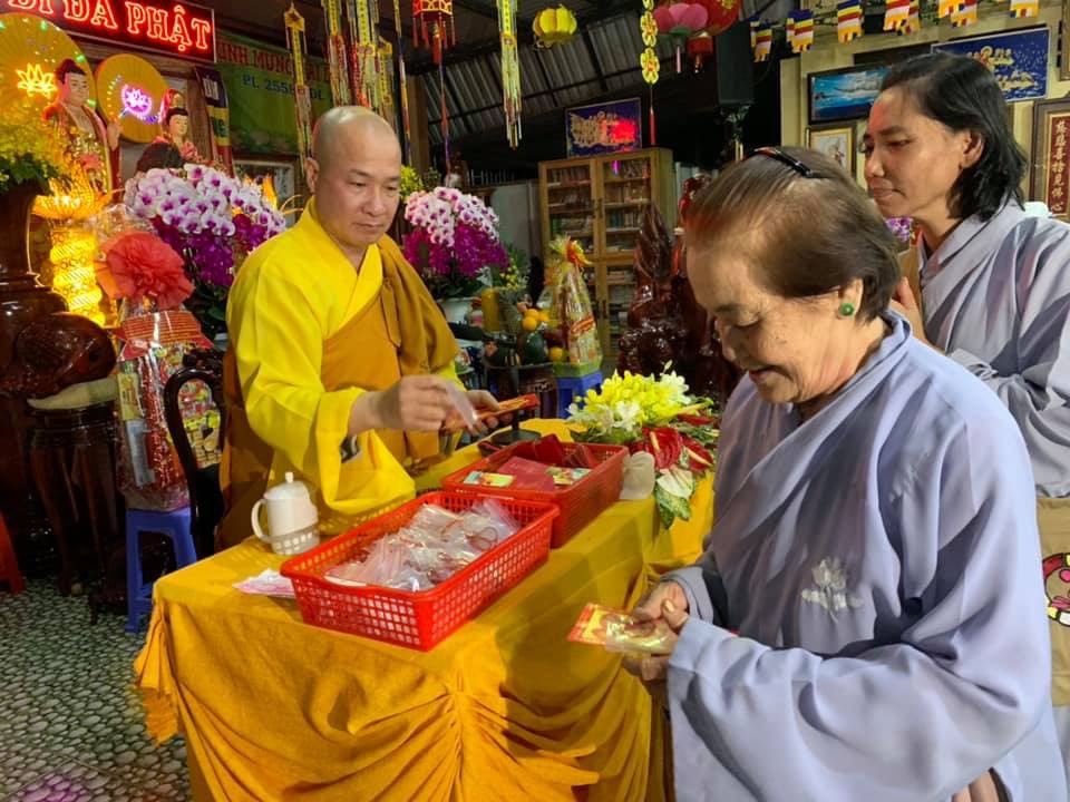 Sau lễ thả hoa đăng, Đại đức Thích Trí Huệ – Ủy viên Thường trực Ban Hoằng pháp TƯ, trụ trì chùa Pháp Tạng đã ban lời đạo từ đầu năm mới cùng những lời chúc Tết nồng ấm tình xuân, ý đạo. Sau đó, Đại đức trao lộc đầu năm đến toàn thể chư Tôn đức và quý vị Phật tử về lễ Phật dịp đầu năm mới.