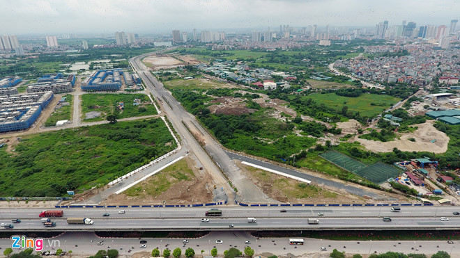| Nút giao tuyến đường mới với vành đai 3 vẫn đang được rào kín. Ảnh: Lê Hiếu. |