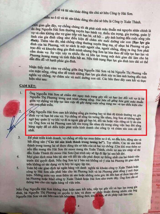 Trong khi đó, liên quan đến những điều tiếng của vợ mình trong thời gian qua, anh Nguyễn Hải Sơn chia sẻ: “Tôi hối hận vì những việc làm trong suốt thời gian qua, vì bản tính nóng nảy, gia trưởng, hay ghen nên rất nhiều lần hành động thiếu kiểm soát và đánh vợ. Tôi mong Phương tha thứ, bỏ qua quá khứ để gia đình được hạnh phúc. Việc Phương bỏ đi cũng là do lỗi của tôi mà bất đắc dĩ dựng lên cảnh tống tiền”.