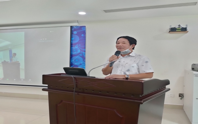 Ông Nguyễn Trường Sơn – Phó Tổng Giám đốc Công ty TNHH MTV Tổng Công ty 28, qua trực tuyến đã trình bày về vấn đề nhân sự chủ chốt và việc đào tạo kỹ sư chuyên ngành cho ngành dệt may, da giày cũng là yếu tố then chốt, góp phần vào vấn để phát triển chuỗi cung ứng của doanh nghiệp.