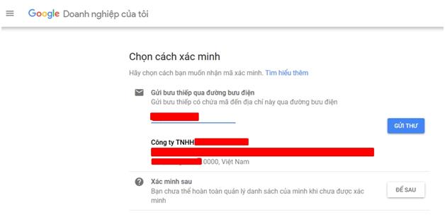 Ở bước cuối hãy nhập đúng địa điểm đăng ký kinh doanh để Google gửi thư xác nhận về cho bạn ẢNH CHỤP MÀN HÌNH |