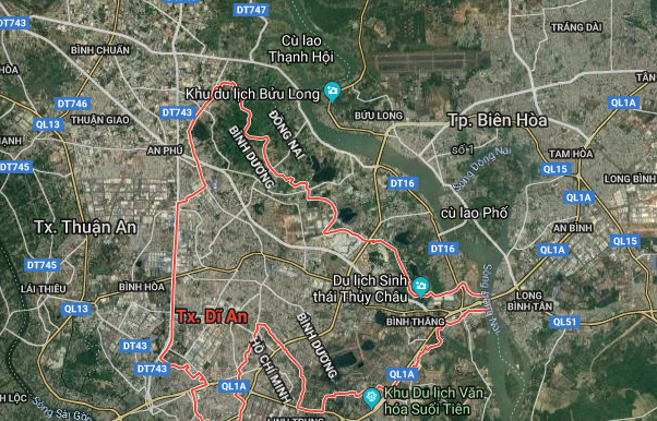 · Phía Bắc giáp thành phố Biên Hòa, tỉnh Đồng Nai và thị xã Tân Uyên.