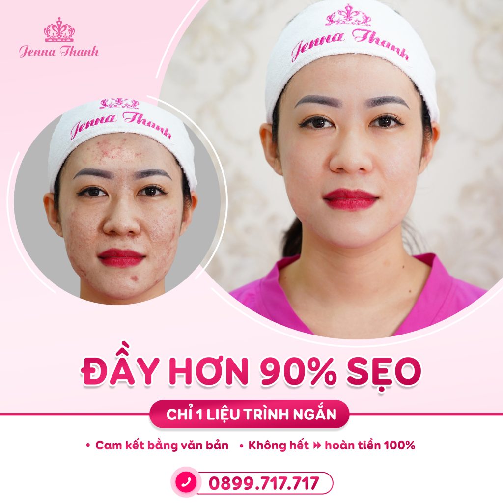 Jenna Thanh cam kết hiệu quả bằng văn bản, có chế độ bảo hành rõ ràng. Jenna Thanh đã điều trị thành công cho hơn 20.000 ca sẹo, tái tạo làn da mang lại sự tự tin cho khách hàng. Nếu bạn đang tìm kiếm một địa chỉ trị sẹo rỗ uy tín tại TP.HCM, hãy đến với Jenna Thanh để được chăm sóc và làm đẹp tốt nhất.
